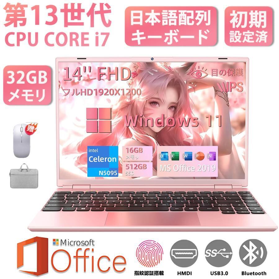 ノートパソコン ピンク windows11 新品 office搭載 初期設定済 N5095 corei7 N95 14インチ 15.6インチ ノート メモリ8GB 16GB 32G 日本語キーボード
