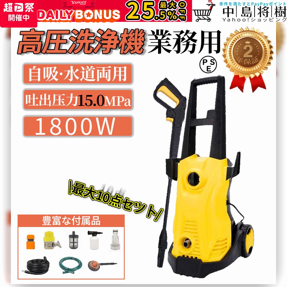 高圧洗浄機 業務用 1800W 15MPa 大容量バッテリー 水道直結 自吸両用 高圧ホース15m 電源コード3m 二重絶縁 IPX5防水 家庭用 洗車 清掃 強力噴射 PSE認証済みZD-wrj038